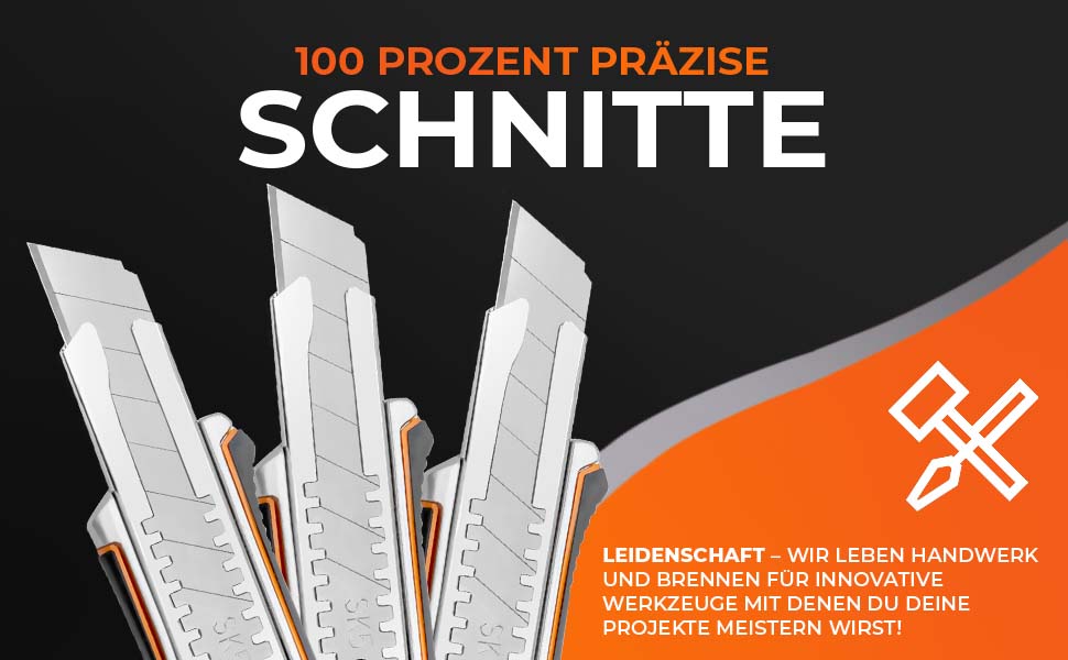 - ✅ BESONDERS SICHER - Der ergonomische Anti-Rutsch-Griff & eine feste Arretierung der Klingen machen das Schneiden mit dem Cuttermesser extra sicher & angenehm - Ideal für Karton, Bauschaum & Tapete!