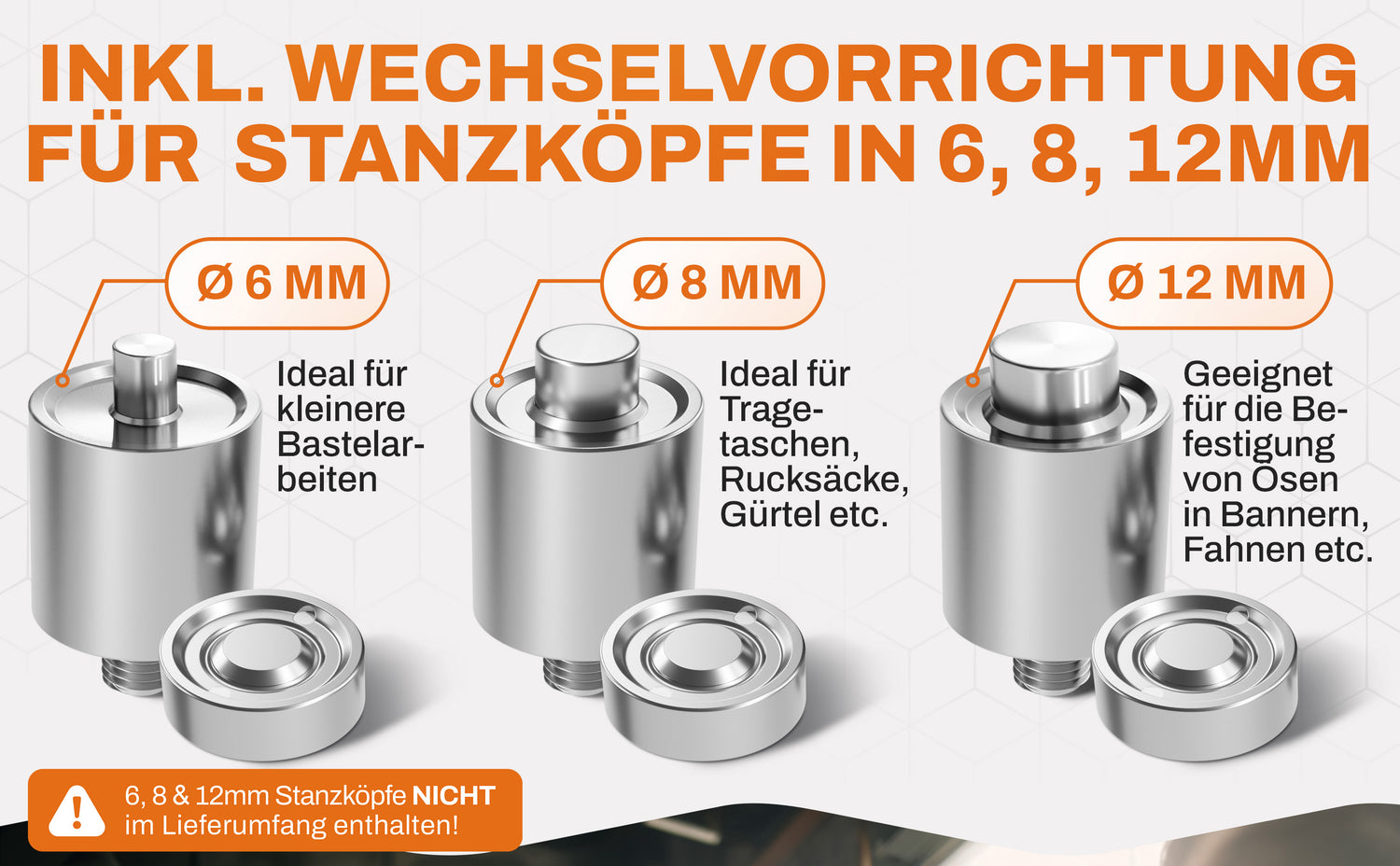 - ✅ ALLE GRÖSSEN VEREINT - Dank des Schraubgewindes lässt sich der Stanzkopf 10mm unserer Ösenzange Alpha mühelos austauschen – weitere Größen in 6, 8 & 12mm sind in unserem Amazon Shop erhältlich!